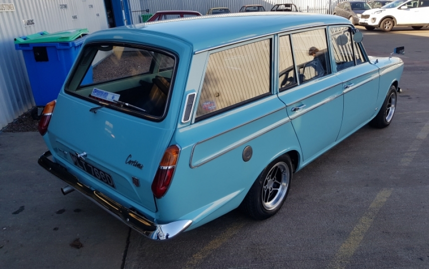 Body - Mk1 Cortina Estate shell which was painted about 10 plus years ago and still looks very good. All chrome strips are in place and good order. Very solid car only ever had a couple of minor repairs underneath in its lifetime. Car attracts lots of attention as its a bit different being the estate. Quarter bumpers fitted to the front
