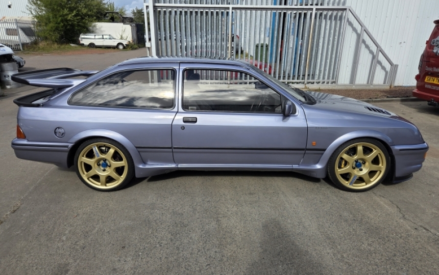 Its a Moonstone Blue 3 door cosworth with all genuine RS500 parts which looks correct being on a E plate. Same owner for the last 16 years wanted for nothing over the years