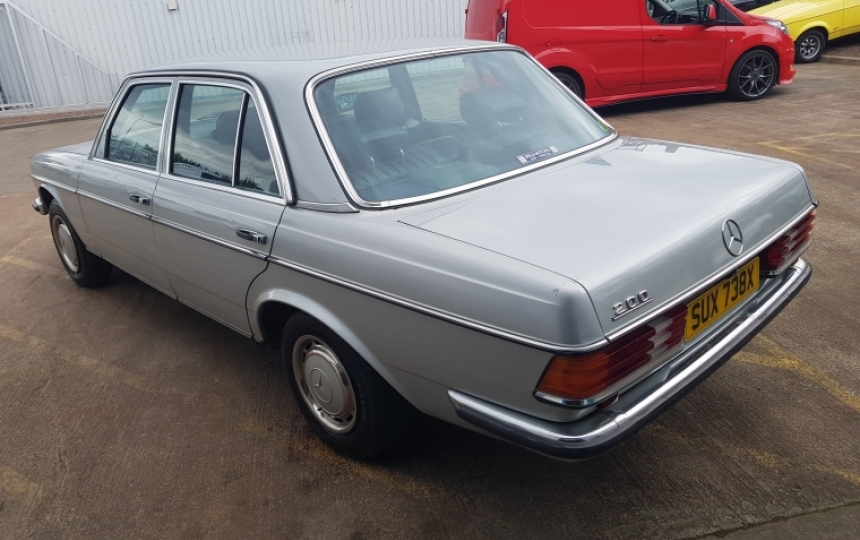 One owner 75000 Miles Mercedes Benz 200 W123 Series. This car was recently imported from the dry climate of South Africa and it is now fully UK registered with 11 months and ready to drive away. The car is solid from front to back and very very origoinal. We have the original handbooks, service book which shows some service history. The plastic is still on the inner sills at parts covering the carpets. we bought it from the original owner and he claims that apart from him nobody else had even driven the car from new.